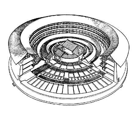外環為主樓,土木結構,高4層,直徑73米。底層墻厚1.5米,四層墻厚0.9米。底層和二層不開窗,底層為廚房,二層為糧倉,三、四層為臥室。每層72開間,含門廳、梯間。除外墻和門廳、梯間的墻體以生土夯筑之外,廚房、臥室的隔墻均以土坯磚砌成。底層內通廊寬1.65米。二層以上挑梁向圓心延伸一米左右,構筑略低于欄桿的屋檐,屋檐下用杉木板按房間數分隔成一個個小儲藏室;屋檐以青瓦蓋面,上面可用干晾曬農作物。東、西面各有2道樓梯。正面、南面開一大門,條石門框。正面大門除了在門媚上鐫刻樓名外,兩邊鐫刻楹聯:“承前祖德勤與儉,啟后孫謀讀與耕。”外環東、西兩側各開一個比正門小的側門。第二環高2層,磚木結構,每層40開間。除正面和東、西兩側各以一個開間作為通道外,其余各間與前向的小庭院、青磚隔墻圍合成小院落,院落的廳堂即二環的底層為客廳或飯廳,樓上為臥室;每個院落各開一門,與三環后側的內通廊相通。院落后側即外環底層的廚房,飯廳對面用青磚建浴室、衛生間、雜物間,高約1.8米。浴室、雜物間與外環以鵝卵石鋪面的小庭院相隔,以若干大塊、端方的青石板鋪設通道。第三環單層,磚木結構,32開間。古代樓主既崇文重教,又不能讓女子到樓外的學堂與男子一起讀書,于是在此辦私塾,并以此作為女子的書房。