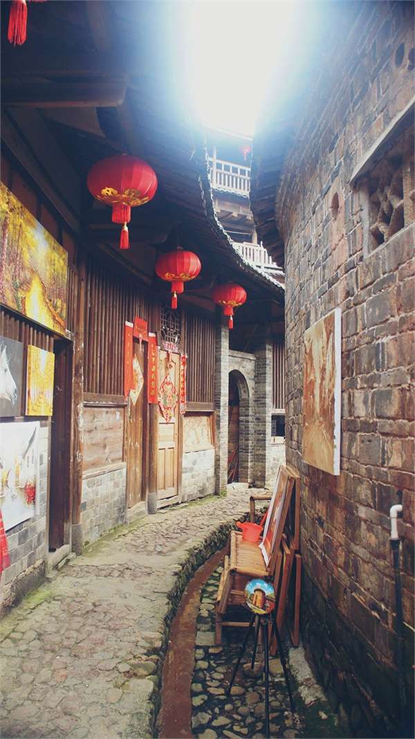 第四環為祖堂,單層,比第三層稍低,使全樓形成外高內低、逐環遞減、錯落有致的格局。占地33.83平方米。后向的廳堂與正面兩側的孤形回廊圍合成單層圓形屋,中為天井。祖堂歇山頂,雕粱畫棟,正面對著大樓門,門面兩側飾繪畫和精美的磚雕;廳堂東西兩側各設一小門與全樓東西走向的通道及外環東西面的兩個邊門相連。版權所有山東聊城聊之旅國際旅行社有限公司,轉載必究!廳堂后向上方和前向屋檐下懸掛清代至20世紀80年代一些名人贈送給該樓的題匾;兩側兩對石柱上鐫刻警示子孫后代的楹聯:“一本所生,親疏無多,何必太分你我?共樓居住,出入相見,最宜重法人倫。”“天地人三盤,奧妙無窮;助人間為樂,造福萬年。”由此可以見證樓主世代立家、做人的理念和曾經有過的輝煌。每逢重大節日,祖堂擺設的巨型圍屏,即16世祖江馨軒71壽辰時的祝壽屏風,由12塊組成,高2.72米,中間8塊每塊寬0.46米,兩邊每塊寬0.47米,精雕細刻,金碧輝煌,古事人物栩栩如生,其中最引人注目的是千古流傳的“二十四孝圖”。屏中正面下半部分的“二十四孝圖”取材于古代孝子的故事,工筆細膩、形象逼真、圖文并茂、寓意深刻,充分體現了土樓客家人敬祖睦宗、孝順父母的傳統美德。圍屏正面上半部分雕刻唐代著名人物郭子儀拜壽圖,背面雕刻清代朝廷六部-及樓主親戚的祝壽詞,內容包括頌詞與對后人的警語。此外,該圍屏還雕刻許多珍禽花鳥。對樓主來說,該圍屏在重大節慶時反復向族人展示,既是讓大家分享藝術珍品,更是對全體族人進行傳統美德的再教育。該樓環與環之間以鵝卵石砌天井相隔,以石砌廊道或小道相連。