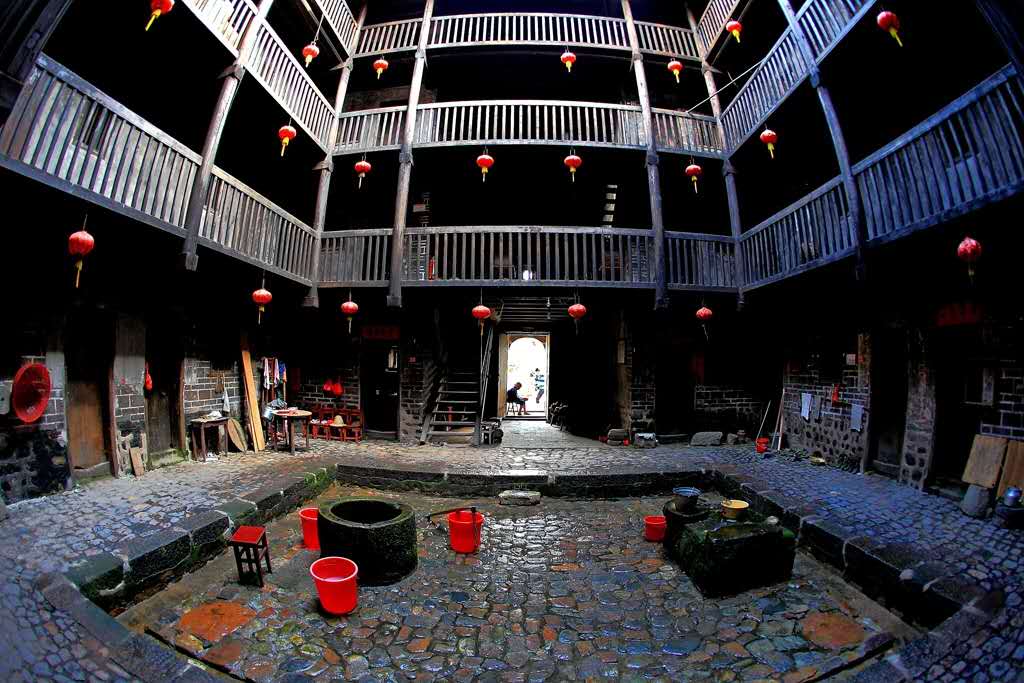 湖坑鎮洪坑村的土樓民俗文化村,是目前開發為觀光最成熟,規模最大的土樓風景區,有土樓福裕樓、奎聚樓、光裕樓、如升樓、福興樓、景陽樓、慶成樓、玉成樓、慶福樓等四十多座土樓。其中振成樓最具代表性、福裕樓是五鳳樓的代表、奎聚樓,應山勢而建,這三座樓極有特色,已列為文物重點保護。版權所有山東聊城聊之旅國際旅行社有限公司,轉載必究!土樓坐落之廣,非直接前往參觀,難以想象,福建西南土樓主要密集分布在福建廣東江西交接山坡地.樓以方型及圓型為主,據說是因地制宜。外部是土墻,里邊為木結構,土墻的基礎是鵝卵石。墻下厚上薄,但上有一尺多厚,下有一公尺多厚。