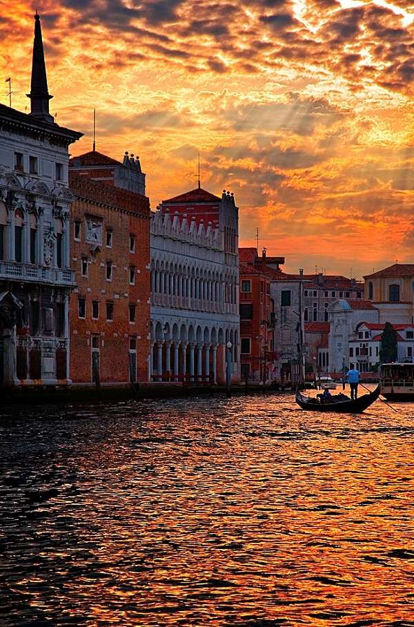 威尼斯大運(yùn)河被譽(yù)為威尼斯的水上“香榭麗舍”大道。在河道的兩邊,散布著各式各樣的古老建筑,既有洛可可式的宮殿,也有摩爾式的住宅,當(dāng)然也少不了眾多的富麗堂皇的巴洛克和哥特式風(fēng)格的教堂。文藝復(fù)興時(shí)代,許多偉大的藝術(shù)家都在這些教堂里面留下了不朽的壁畫和油畫作品,至今仍吸引著世界各地的無數(shù)游客和藝術(shù)家。此外,遍及運(yùn)河兩岸的店鋪、市場(chǎng)以及銀行等等,也給這個(gè)水上大都市增添了無窮的活力。
