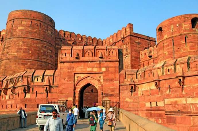 建立在阿格拉的“紅堡”,坐落在亞穆納河畔,占地38萬平方米,外圍由高十二米的紅色砂石城墻圍成,總體呈半圓形。曾經(jīng)是莫臥兒王朝的皇城所在地,現(xiàn)在是伊斯蘭教建筑的代表之作,著名世界遺產(chǎn)和印度著名的旅游之地。從16世紀到18世紀初,阿格拉一直是印度首都。這里是統(tǒng)治全印度幾百年的莫臥兒王朝的首都所在地,這里融合了登峰造極的藝術(shù)成就與刻骨銘心的愛情故事。