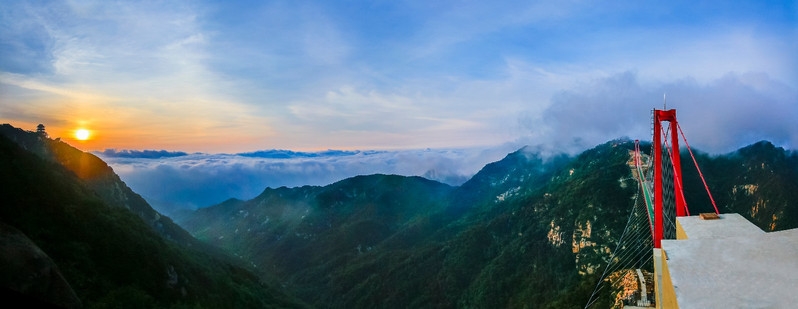 玉皇頂為沂山最高峰,上有玉皇閣、玉皇廟、望海亭、探海石、太清洞等。如在晴日的初晨,立于玉皇頂探海石側(cè),可欣賞到海上日出的奇觀。