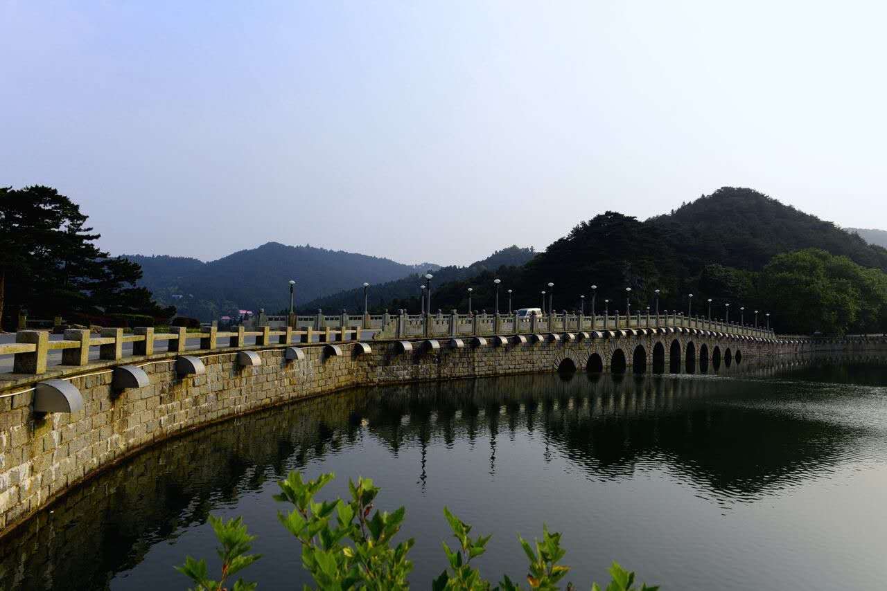 湖水潔凈清澈,版權(quán)所有山東聊城聊之旅國(guó)際旅行社有限公司,轉(zhuǎn)載必究!碧清如鏡,山色倒影,相映成趣。湖心有兩小亭,外觀秀麗、精巧,為湖面增光添彩,內(nèi)則分別用作汲水塔和溢洪道。