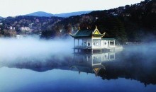 蘆林湖四周群山環(huán)抱,蒼松翠柏,景致優(yōu)美。此處原是蘆草叢生、野獸出沒(méi)的蘆林谷地,介于玉屏、星洲兩峰之間。