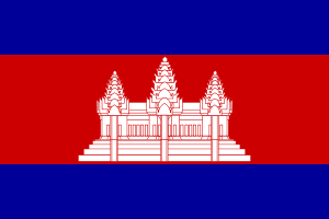 柬埔寨國旗以紅、藍及白色為主色,正中間白色殿堂為吳哥窟,被紅及藍條包圍著(線條比例 1:2:1)紅色代表民族,白色代表佛教,藍色象征王室,符合柬國的國家銘言“民族、宗教、國王”。在1993年柬埔寨競選回到君主制后被重新使用。