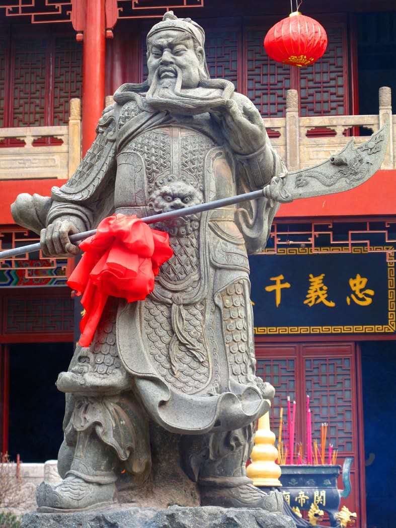9、廣場關(guān)公立姿石像 誠信殿旁,花崗巖雕塑的關(guān)公立姿像,高4.8米,關(guān)公面朝東方,握刀遠(yuǎn)眺,威儀凜然,似乎在訴說“我回來了”!