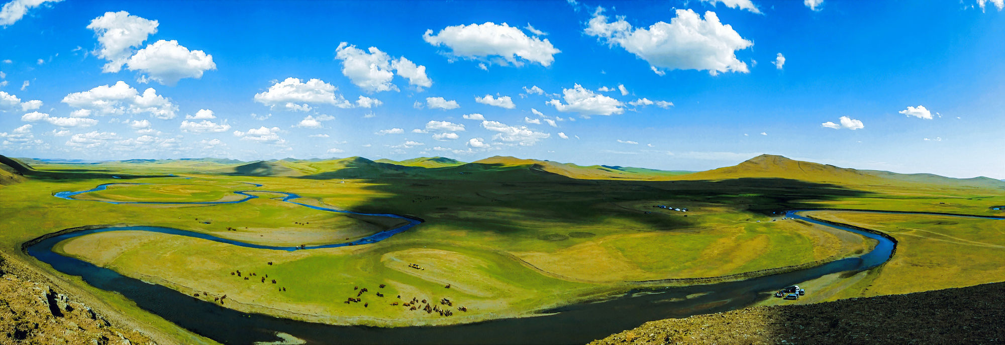 藍天白云下,鑲嵌在一望無際的綠色草原上的莫日格勒河,顯得是那樣嬌柔嫵媚,在這種純自然的優美環境中,騎上駿馬,駱駝,或是坐在勒勒車上,沿著彎彎曲曲的莫日格勒河溜上一圈,再走進蒙古包里喝上幾碗用莫日格勒河水和鮮奶煮就的奶茶,嘗一嘗香氣四溢的手把肉,同牧民聊聊家常,聽牧民講述動人的傳說和故事,那該有多么愜意啊.