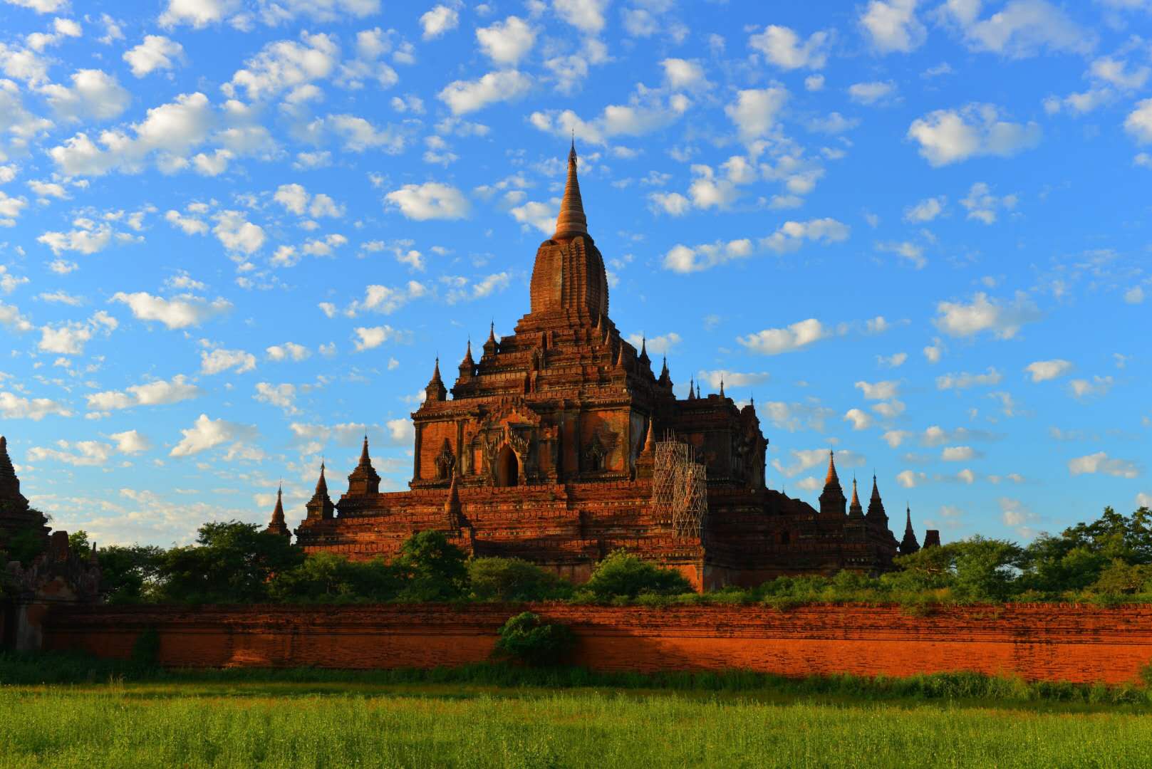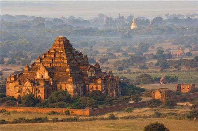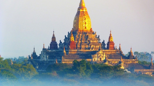 蒲甘王朝是由阿奴律陀國王(King Anawrahta,1044年至1077年在位)于1044年建立,為緬甸第一個統一的帝國,以上座部佛教為國教。阿諾耶塔國王相繼征服撣族和孟族,也不斷擴展領土。在阿朗西都國王(King Alaungsithu,1111年至1167年在位)掌政時,上座部佛教逐漸成為主流,并在13世紀初期達到頂盛。當時建造的3000余座寺廟尚有100座保存至今。1287年蒙古統治者忽必烈(Kublai Khan)率領元朝軍隊大肆入侵(元緬戰爭)而使得蒲甘王朝失去了獨立性,不久后滅亡。