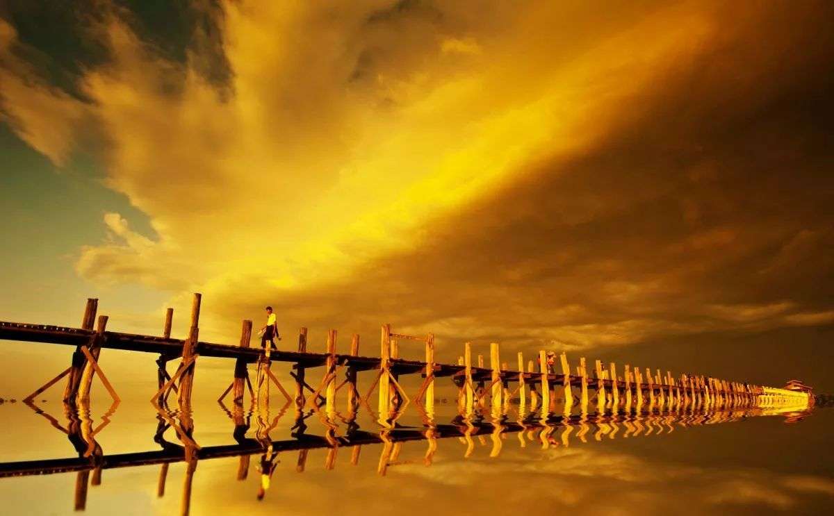 烏本橋(U Bein Bridge),在緬甸的Amarapura(阿馬拉布拉)古城境內(nèi),橫跨東塔曼湖(Taungthaman),長達(dá)1200米,是世界上最長的柚木橋。
