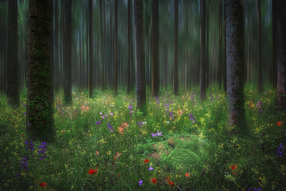 黑森林大部分被松樹和杉木覆蓋,其中一部分是經濟林。人們之所以稱其為“黑森林”,是因為山上林區內的森林密布,遠遠望去顯得黑壓壓的一片。但上世紀的玻璃工業對木材需求巨大,加上農業開發,整個黑森林地區的森林覆蓋面積只及羅馬時代的百份之十左右,直到人們開始著重環保後,森林比率得以恢復至百分之六十左右。