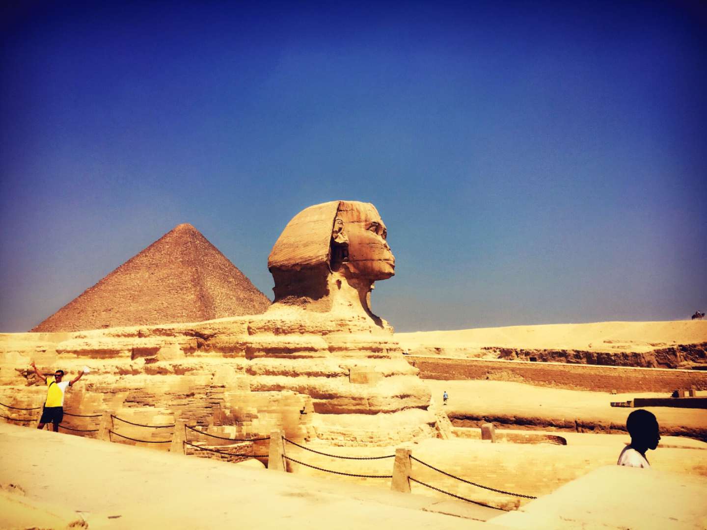 如果不說金字塔是世界奇觀,就不能說是到過了埃及。從開羅西行數(shù)公里,來到吉薩村前。在便屹立眼胡夫金字塔東側,便是獅身人面像,它以誘人的魔力,吸引了各地的游客。“怪物”--斯芬克斯獅身人面像的頭像,真的是以胡夫作模特兒的嗎?不過比較可惜的是獅身人面像的鼻子被打破了,有損美觀及協(xié)調性。
