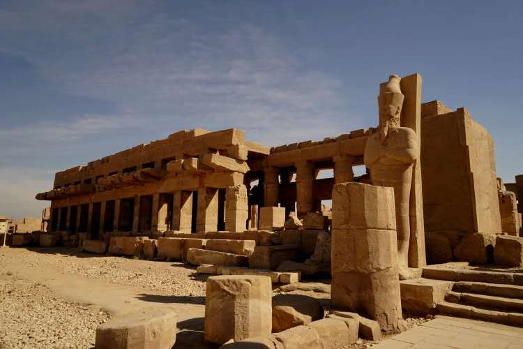遺址占據(jù)當(dāng)時底比斯東城的北半部。通過斯芬克斯(見獅身人面像)大道與南面1千米的盧克索相接,那里另有一座阿蒙神廟。由于中王國和新王國各朝都是從底比斯起家而統(tǒng)治全國的,底比斯的地方神阿蒙神被當(dāng)做王權(quán)的保護(hù)神,成為埃及眾神中最重要的一位。這里的阿蒙神廟也成為全國最大最富有的神廟。