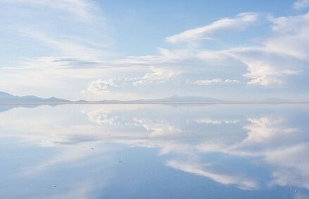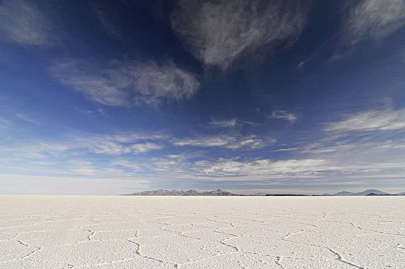 在高原南端有一些冰川融化時留下的鹽湖,而在1萬年前最后一個冰期(第四紀冰期)結束時,湖水已逐漸消失。高原上最大并最令人印象深刻的就是烏尤尼鹽沼(Salar de Uyuni)。每年夏季(雨季12月至次年1月),它被雨水注滿,形成一個淺湖;而每年冬季(旱季7月至10月),湖水則干涸,留下一層以鹽為主的礦物質硬殼,中部達6米厚。人們可以駕車駛過湖面。尤其是在雨后,湖面像鏡子一樣,反射著好似不是地球上的、美麗的令人窒息的天空景色,這也就是傳說中的“天空之鏡”。由于面積空曠,極其光滑(覆蓋著淺水),同時又極平整(海拔差異極小),地表反射率極高,使阿塔卡瑪成為一個理想的測試和校準地球遙感衛星之地。