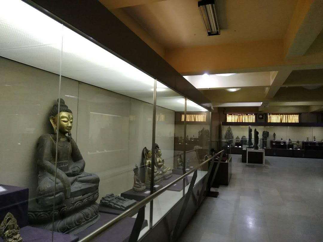 館內(nèi)分石雕、古畫(huà)、木刻、鑄像等陳列館,陳列有 2 世紀(jì)的菩薩、7 世紀(jì)的釋迦牟尼之母摩耶夫人的雕像,是尼泊爾古代雕刻、鑄造、繪畫(huà)藝術(shù)薈萃之處。藝術(shù)館底層陳列室,有許多常人一般大小的泥塑群像。他們雖然服飾各異,但造型非常生動(dòng),形象逼真。這里是尼泊爾各民族風(fēng)尚的藝術(shù)陳列館,稱為民族館,共有 13 組塑像,分別表現(xiàn)了尼泊爾人民的風(fēng)俗人情。博物館大院的南面,是馬亨德拉國(guó)王紀(jì)念館。這是一幢重檐寺廟式建筑,門楣檐柱刻滿神像,屋頂橫列 7 座小尖塔。館內(nèi)分 13 個(gè)陳列室,以實(shí)物和圖片、錄音帶和影片等資料,反映了馬亨德拉的生平經(jīng)歷和生活。博物館還特辟有兒童室,主要陳列世界各地的蝴蝶和鳥(niǎo)、獸標(biāo)本。