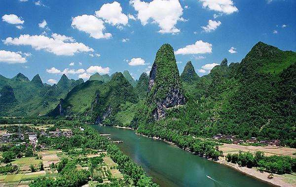西峰 與觀音、千山、立魚為連座峰林、位于3峰西部,海拔357米,相對高度107米,東西長1600米,南北寬97米,山體面積82.25公頃,拾磴可達峰前之龍頭石林。遠望西峰,挺拔高聳,雄踞諸峰之土,是西山的最高峰。每近黃昏,夕陽遍灑,金光萬道,是為膾炙人口的桂林八景之"西峰夕照"。