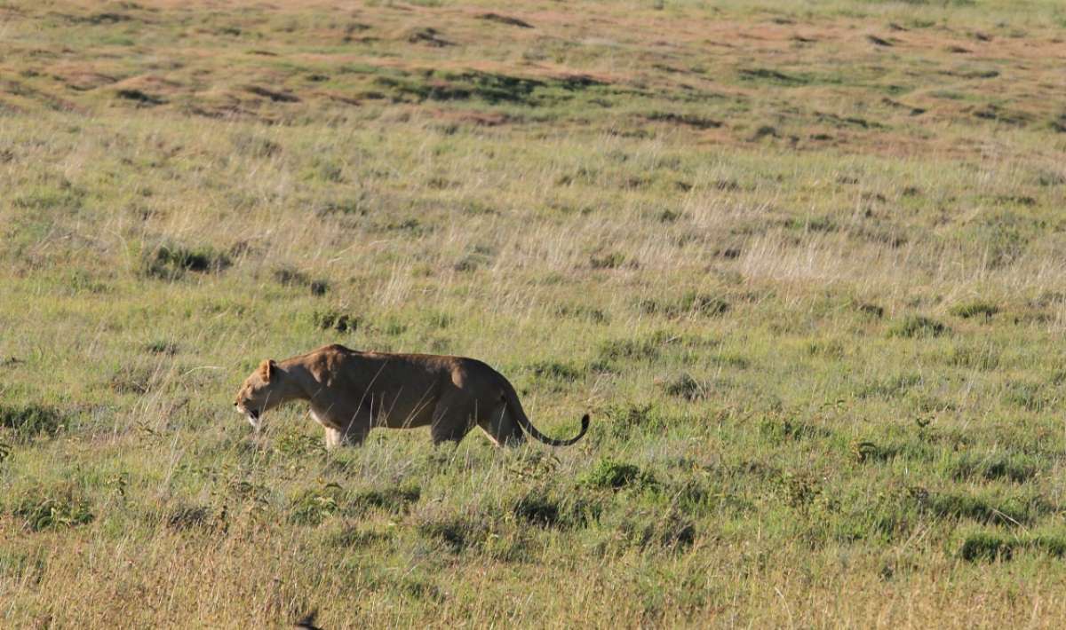 吃草的斑馬、角馬和瞪羚主要依賴草原,同時成為獅、獵豹、鬣狗、豺狼等的食物。這些食肉獸在食草動物群附近徘徊,像公路上的攔路劫匪,等待著狙擊離群的動物。食草動物大多在一、二月間青草最綠時生育,食肉動物也同樣在此期間繁殖,以便捕捉大量食草動物幼崽供哺乳的母獸和斷奶后的幼獸食用。所以火山口內并非想像中的樂園。角馬群一見徘徊的獅子就引起騷動,瞪羚受驚就跳躍逃生,斑馬在角馬群中吃草很顯眼,但它們移動或在熱霾中吃草時,身上斑紋會與周圍環境渾然一體(見附圖)。火山口內有15000只角馬,大部分會全年聚成大群一起生活。群居保安全!離群的角馬會成為食肉獸的獵物。