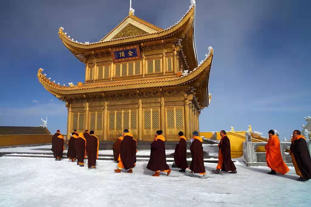 金頂華藏寺海拔3千多米,氣候嚴寒,生活在這里的僧人們要克服生活、氣候等諸多方面困難。金頂重建以來,僧人們常年居住在這里,精心守護著佛寺,并逐年進行維修,創造條件,熱情接待國內外各界人士,為建設峨眉山佛教寺院、發展峨眉山旅游事業作出了貢獻。