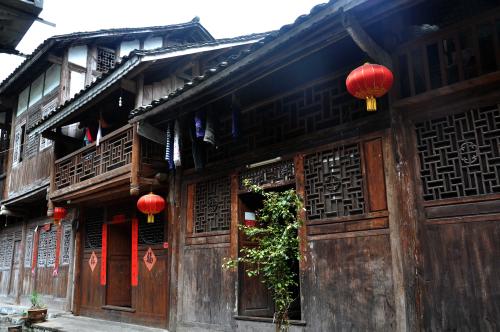 在龔灘,冉是大姓,冉家院子,已有三百年歷史。它四周封閉,進入其中,有置身徽派民居的感覺。但是與徽派民居不同,它一面是開放的,吊腳樓廊伸向街面,正房和廂房都是穿斗式結構,都是龔灘地道的建筑風格。