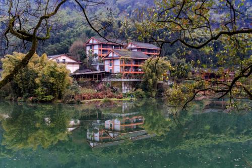 廣濟禪師根據寺周山水懷抱的天然風貌,又見亭、臺、樓、閣與流水潺潺和諧相融,即取晉朝詩人左思《招隱詩》中的“何必絲與竹,山水有清音”中的“清音”二字,改寺名“清音閣”,后廣濟禪師圓寂在后牛心寺。在清音閣深夜聽“清音”,是最好的黃金時段,早在1200多年前就大有人在了:唐代初年的高僧繼業三藏,從印度研經歸來,常信在大峨寺后的呼應庵中。夜聽清音,已成了他多的癖好,每每必至,往返六十多里,風雨無阻;還留下了一段美好的傳說:在一個月明星衡的秋夜,他喜孜孜的傾聽著“清音”返回庵中。在黑、白二水匯流處,高興地拾得一枚奇石,竟如人面,眉清目秀,活生生的呼之個人成分出,以為至寶,供奉前,見石之處,后名“寶現溪”。而今,雖然人面寶石不見了,但“寶現溪”這個地名是無法磨滅的,至今還泛起人們聽清音的興頭。在清音閣,可看到山光水色,聞到花草芬芳,聽到流泉清音,觸摸到亭臺碑石。它集中了視覺美、聽覺美、嗅覺美,使游者獲得峨眉風光總體的審美感受;古今游人多稱譽為“峨眉山第一風景”。周邊景色優美,玲瓏精巧的樓閣居高臨下。中部,是丹檐紅樓的接御、中心二亭、亭兩側各有一石橋、分跨在黑白二水之上,形如雙翼,故名雙飛橋。近景,則為匯合于牛心亭下的黑、白二水。右側黑水,源出九老洞下的黑龍潭,繞洪椿坪而來,水色如黛,又名黑龍江;左側白水,源出弓背山下的三岔河,繞萬年寺而來,水色泛白,又名白龍江。版權所有山東聊城聊之旅國際旅行社有限公司,轉載必究!兩江匯合沖擊著碧潭中狀如牛心的巨石,任其黑、白二水洶涌拍擊,仍巍然不動,組成獨具特色的寺廟、山水、園林環境。“戊戌六君子”之一劉光弟也巧妙地將二橋一石概括為:“雙橋兩虹影,萬古一牛心”。這樣如詩如畫的“雙橋清音”是“峨眉山十景”之一;這里一年四季,無論晝夜,滿回蕩著水聲,這水聲單一而清晰,加上兩橋,故而譽為“雙橋清音”,成為峨眉十景之一。交通信息編輯從五顯崗停車場步行約30分鐘可到。地理位置編輯清音閣位于峨眉山風景區的核心地段,左通洪椿坪、仙峰寺,右達白龍洞、萬年寺,為上山朝拜、觀光必經之地。