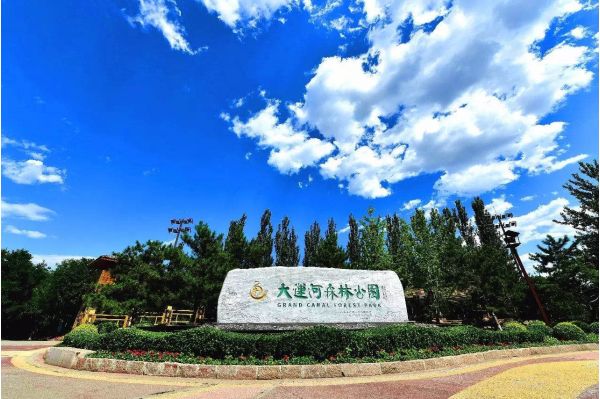 通州大運河森林旅游區通州區大運河森林公園位于北京通州新城北運河兩側,北起六環路潞通橋、南至武窯橋,河道全長約8.6公里,左堤長8191米,右堤長3639米,總建設面積713公頃(約10700畝),整體氣勢宏大,體現運河平闊如鏡,平林層層如浪,綠楊花樹如畫,皇木沉船如煙的特色,展現現代與樸野并存的風格。