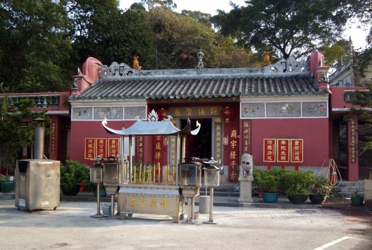 譚公廟位于路環十月初五街尾,與中國大陸小橫琴島極接近。該廟屬道教廟宇,是路環香火最盛的廟宇,建于清同冶年間,也為1862 年。廟內除供奉譚仙圣外,更加置有一只由鯨骨雕制而成的龍舟,是一件已有百多年歷史的文物。廟內的“魚骨舟”為鎮廟之寶,據說摸過鯨骨會行好運,故善男信女進香后必順便摸一摸龍骨。而在廟外一塊刻有《鵝》字的巨形靈龜石,亦為區內一個特色標記。