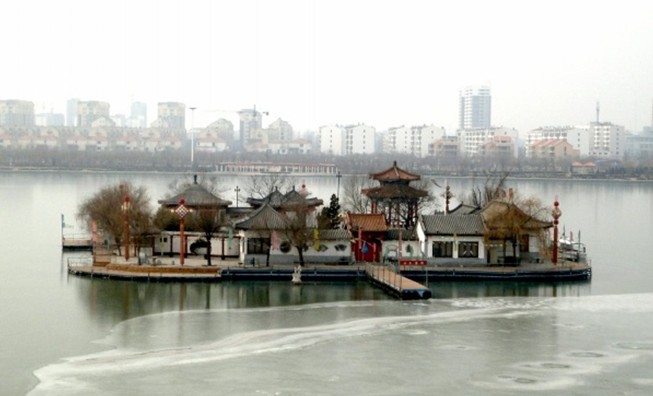 湖心島坐落在聊城東昌湖西北角,面積2750平方米,主要建筑有望岳亭、溢香齋、翠園、沁園、金魚 館、石刻雕塑等。望岳亭在島的西北角,高7.8米,占地80平方米,黃琉璃瓦垂檐六角攢尖頂,六柱拱托,柱間設有坐凳,供游人休息。版權所有山東聊城聊之旅國際旅行社有限公司,轉載必究!垂檐內均繪《聊齋志異》中胭脂故事。建筑精巧宏麗,與光岳樓遙遙相對。溢香齋位于望岳亭北側,為殿堂式歇山頂建筑,共3間,占地60平方米。島的東側和中部為翠園,南部為泌園。西南為金魚館,石刻雕塑設于后花園。