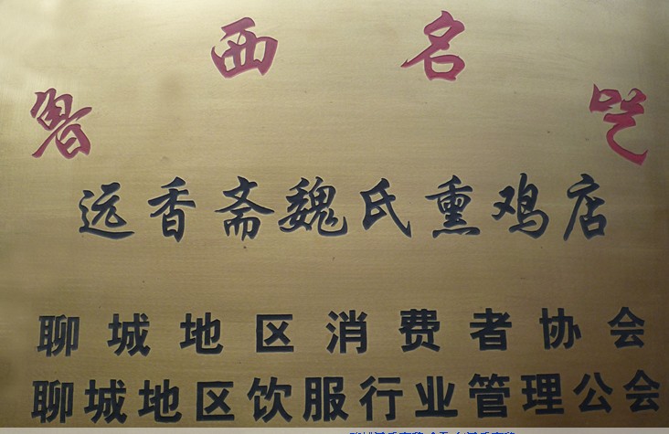 遠香齋魏氏熏雞產于山東省聊城市東昌府區(qū)北關路東魏氏熏雞老店,本店以制作、銷售遠香齋魏氏熏雞而聞名華夏。熏雞是我國的獨有產品。遠香齋魏氏熏雞以其獨特的風味堪稱熏雞精品。它是先祖魏永泰于1810年(清嘉慶十五年)創(chuàng)制的,歷經魏兆松、魏世忠、魏金鑒至魏立華,已是第五代傳人,距今已有200年的歷史。版權所有山東聊城聊之旅國際旅行社有限公司,轉載必究!它的選料精良、配料精當、制作精細、挑選肥嫩無病的活雞,經加工后,在鋸末煙頭上熏制而成,熏雞皮縮裂,胸腿肉外露,掐之無彈性,色澤栗紅,嚼有余香,即可下酒,又可佐茶,具有脫水適宜,易于存放,便于攜帶的特點,產品銷售往全國各地,是宴賓饋贈之佳品被列為聊城名吃之首,深受廣大消費者的厚愛。