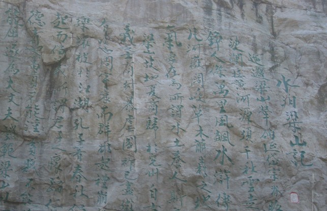 《水泊梁山記》是著名書畫大師范曾2002年專為水泊梁山風(fēng)景區(qū)撰寫。先生懷著對英雄故里的一腔深情,慷慨揮毫、步其先人范仲淹《岳陽樓記》韻,全文368字,描述了水泊梁山河岳闊峻、草木蕭森的雄奇景象。《水泊梁山記》大型摩崖石刻,通高7米、長14米,距地面10余米,單字最大55厘米見方,最小字30厘米見方,通篇368字占地近100平方米,氣勢恢弘、蔚為大觀,形成了南有《岳陽樓記》、北有《水泊梁山記》的文化格局。為旅游勝地水泊梁山再添景觀,現(xiàn)為水泊梁山風(fēng)景區(qū)的主要景點(diǎn)之一。與梁山粗獷豪放的山體及周圍環(huán)境交融,深化了景區(qū)的水滸文化內(nèi)涵,成為進(jìn)入梁山風(fēng)景區(qū)山寨景區(qū)的標(biāo)志性景觀,其所在廣場,亦成為在梁山舉行的與水滸、旅游有關(guān)的大型集會的場所之一。