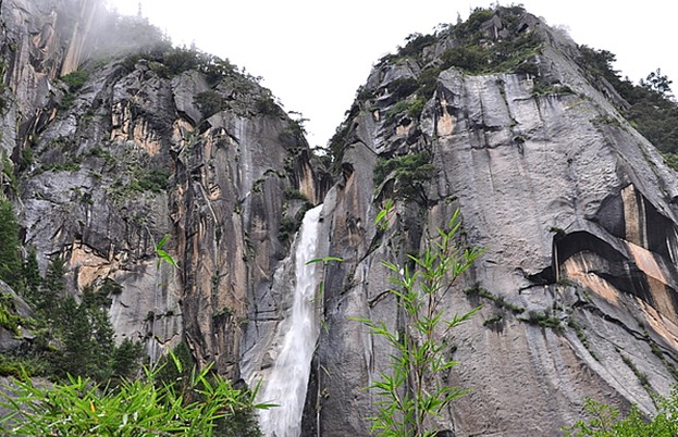 林芝卡定溝天佛瀑布位于西藏318國道拉薩至林芝段距八一鎮(zhèn)24公里處,海拔2980米,地處雅魯藏布江支流尼洋河畔,氣候溫濕宜人,雨水充沛,森林茂密夏季最高氣溫28℃冬季最低氣溫零下6℃,冬暖夏涼濕避暑度假的好地方。林芝卡定溝瀑布屬花崗巖峽谷風貌,由于受印度洋暖濕氣流的影響,峽谷兩側山高崖陡,版權所有山東聊城聊之旅國際旅行社有限公司,轉載必究!疊嶂起伏,蒼松巨柏遍布山崖。藤竹布滿溝底,杜鵑等幾十種野花飄香,左側山崖200多米落差的瀑布由天而降,更為神奇的是瀑布水中天然形成的一尊大佛時隱時現(xiàn),天佛瀑布由此而此得名。據(jù)說這是林芝地區(qū)藏族同胞的保護神,難怪大家對這尊佛像十分的敬仰。如果用望遠鏡看,還可以看到瀑布右上角有一個藏族美女的圖案,惟妙惟肖的,這里面肯定有不少美妙的傳說??ǘ咸旆鹌俨荚诓刈迦嗣竦男哪恐杏兄峭话愕牡匚弧?/p>