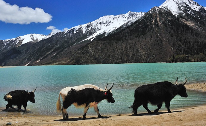 由于然烏湖仍能外流,除了降水補給外,還有周圍諸如伯舒拉嶺、嘎布崗日雪山及阿扎貢拉冰川等冰雪融水的充足補給,所以湖水礦化度很低,每升水僅含鹽0.3克,屬淡水湖,且水溫也較低,夏季變動于6.6-15.4℃之間,冬季則結冰。湖中還盛產無鱗魚類,肉質細嫩,在湖邊公路兩旁一些小飯館里,版權所有山東聊城聊之旅國際旅行社有限公司,轉載必究!你可以盡情品嘗到它的美味。