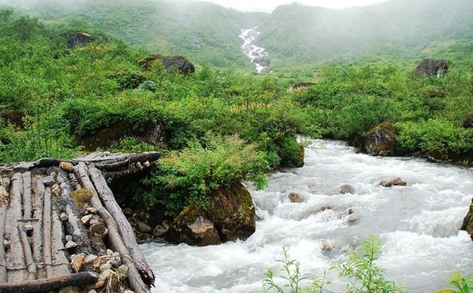 朵尼拉繪聲繪色的述說,使我們這些外來人深切地感到,墨脫是個(gè)神秘的地方,難怪在這里有著許多可供信徒朝拜的圣地,其中著名的就有仰桑河、布達(dá)切波雪峰和宮堆頗章。清澈味甜的仰桑河。