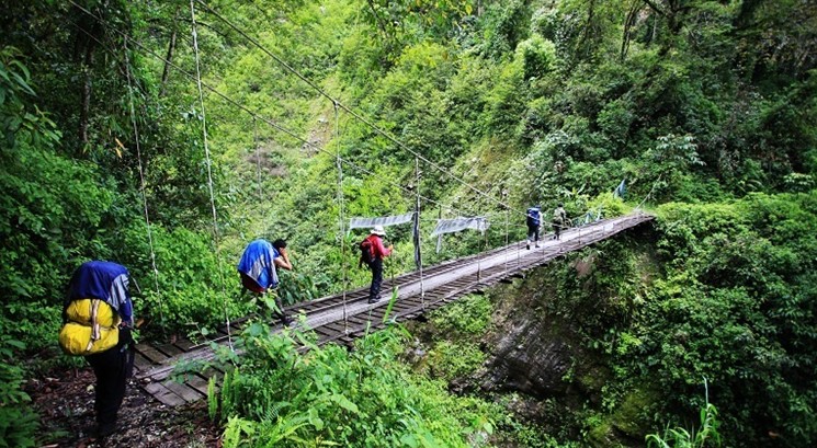 因?yàn)榈貏蓦[蔽,墨脫被稱為“隱藏在云霧、雪山、密林中的人間絕域”、“地球上的最后秘境”。從前去墨脫,必須翻雪山、攀峭壁、穿密林,用自己的雙腳長途跋涉、步步丈量。通往這天堂般美麗地方的道路如同煉獄,江兩岸山壁陡峭,深谷中江水洶涌,許多路段是在峭壁上鑿成的天險(xiǎn),一面是陡峭的山崖,一面是萬丈深淵;山口處不分冬夏都是白雪皚皚,沿途是猝不及防的雪崩、驟雨、飛石、泥石流諸多艱險(xiǎn)。