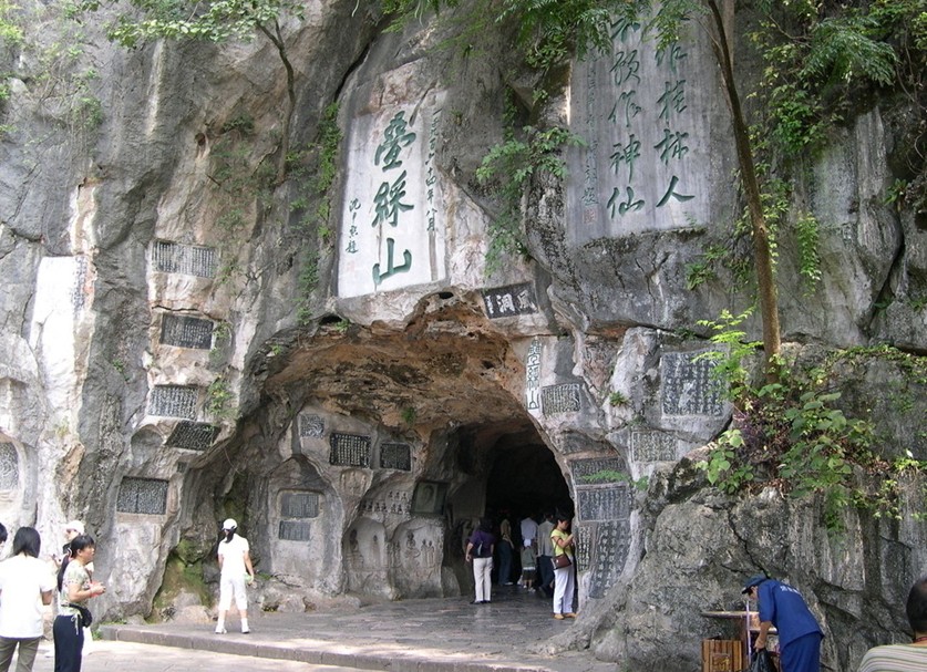 宋人劉克莊《風(fēng)洞詩》“風(fēng)干天地間,惟桂尤其雄”“不知何處起,但覺來無窮”說出風(fēng)的奇;明王鳴鶴《疊彩山題詩》:“春游門壑暖風(fēng)回”,是春天的風(fēng);清徐德升《風(fēng)洞山詩》:“風(fēng)聲習(xí)習(xí)洞門窄”,是夏日的風(fēng);明蘇浚《游風(fēng)洞詩》:“高臺受和風(fēng)”,是南國之秋的氣候;清周甫麟《疊彩山詩》:“洞疑詩思曲,風(fēng)逼酒瓶凍”,則是寒冬的景象了。洞里的風(fēng)總是清新、和煦、涼爽、均勻交替著,這是最奇特的地方。風(fēng)洞既是風(fēng)的世界,又是文物寶庫,是桂林山水一個重要景點。