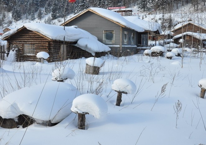 雪鄉猶如一顆璀秈的明珠,鑲嵌在張廣財嶺的東南坡,由于受山區小氣候的偏愛,這里每年十月瑞雪飄飄,冬季積雪厚度可達2米深,雪質優良,雪量豐富。隆冬季節幾乎日日飛雪迎賓,好一派北國風光。擁著層層疊疊的積雪,百余戶的居民區猶如一座相連的“雪屋”,房舍隨物具形的積雪在風力的作用下可達1米厚,其狀好似奔馬、臥兔、神龜、巨蘑……千姿百態,仿佛是天上的朵朵白白云飄落,雪鄉從初冬冰花乍放的清晰到早春霧淞涓流的婉約,無時無刻不散發著雪的神韻,因此得名-中國雪鄉。景色秀麗民風淳樸氣候獨特的“中國雪鄉”雙峰景區是大海林風景區的重要組成部分,積雪期長達七個月,積雪深達2米,皚皚白雪在風力的作用下隨物具形,千姿百態,雪鄉的夜景尤為美麗,淳樸的雪鄉人在自家掛起大紅燈籠,潔白如玉的白雪在大紅燈籠的照耀下,宛如天上的朵朵白云飄落人間,幻化無窮。