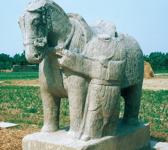 韓氏墓地石刻群 古代石刻群。位于莘縣董杜莊鄉梁丕營村東北。系唐末魏博節度使韓允中及其父韓國昌墓葬神道石刻群。墓葬坐北朝南,地表封土已平。石刻存有韓允中墓碑、韓國昌神道碑、墓表、豕、羊、馬、武士俑。韓允中墓碑和韓國昌神道碑形制大小基本相司。碑身與碑額為整石雕出,通高6.8米、寬2.13米、厚0.77米。額上浮雕6條龍,曲折盤繞,層次分明,龍首飾在碑首側,碑首正中留有圭字形額。碑文多有殘缺,可辯者有2500余字,書體工整秀勁,波折險峻,有褚體韻致。墓表,位于神道碑的最南端,八棱形,通高3.49米,表首圓形,飾仰蓮,座方形。八棱柱體上刻有宋紹圣二年的簡短文字,記敘了宋代補添神道石刻的經過。石豕,首殘,殘高1.12米。肌肉雄健,四足有力,蹲坐于方形基座上,隱露出勇猛不可侵犯的樣子。石羊,高0.92米,俯臥在長方形基座上,雙角大而彎曲,安詳地注視前方。石馬,首尾長2.36米,高1.60米,著鞍轡,雕琢渾樸。馬左前雕出一胡服束帶牽馬石俑,頭部已殘,高1.40米,形象威嚴,版權所有山東聊城聊之旅國際旅行社有限公司,轉載必究!神態逼真。武士俑,頭戴冠,雙手持劍站立在方形臺基上,高2.73米,短頸,雙目圓睜,威武莊嚴。韓氏先世為河南汝南人,世為魏將,國昌官至貝州刺史,唐大中六年(852)卒。允中官至魏博節度使,乾符元年(874)卒。父子俱為顯官,故神道石刻之高大雄偉有異于常。1992年6月被山東省政府列為省級重點文物保護單位。