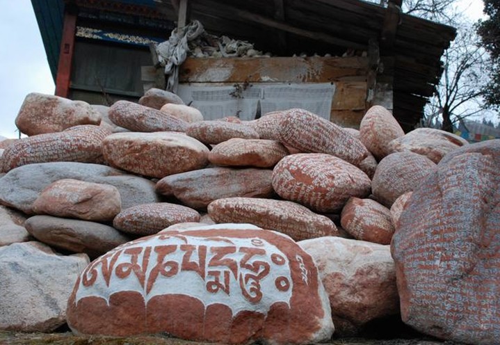 嘎東寺位于日喀則白朗縣年楚河以北16公里嘎東鎮境內。嘎東寺歷經寧瑪派、噶舉派、薩迦派,到十七世紀中葉開始盛行格魯派。寺中珍藏有舉世罕見的寶物,即該寺第四任堪布桑布欽布的兩條徑骨和空行母絲薩曲珍的頭顱。在桑布欽布右徑骨上端的骨縫四周天然生成著微小的釋迦牟尼、觀音菩薩、無量光佛、護法神、度母五尊佛像;左脛上端天然生成著微小的釋迦牟尼佛像和4個白色舍利;在度母化身空行母絲薩曲珍的頭顱上天然生成著三個藏文字母和度母像。原嘎東寺已被毀壞,1985年在原址上重新修建了嘎東寺。