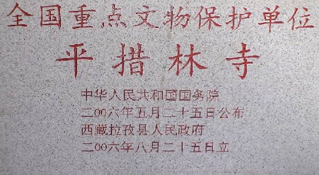 2006年05月25日,平措林寺作為明代古建筑,被國(guó)務(wù)院批準(zhǔn)列入第六批全國(guó)重點(diǎn)文物保護(hù)單位名單。