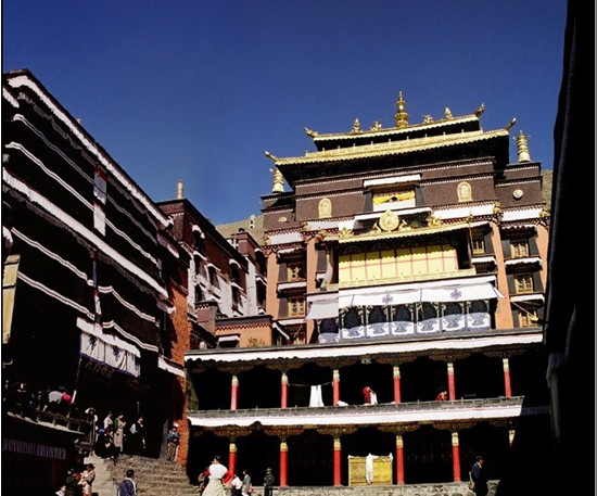 于公元1615年由多羅那他主持修建。原信奉覺(jué)朗派,到五世達(dá)賴?yán)飯?zhí)政時(shí)期,該寺屬13座寺廟換教寺之一,故信奉格魯派。寺院曾有35個(gè)殿堂和一個(gè)誦經(jīng)大殿,3300名僧人,并在寺廟的山頂處修建了94間高9層的達(dá)耶拉塔臥室。寺內(nèi)保存有大量珍貴的老壁畫和鍍金銅佛像,如生威金剛、時(shí)輪金剛、勝樂(lè)金剛等164件。版權(quán)所有山東聊城聊之旅國(guó)際旅行社有限公司,轉(zhuǎn)載必究!還珍藏著四大寶:一是土布瓦?喜繞堅(jiān)贊的拐杖,約1米長(zhǎng);二是達(dá)耶拉塔的手杖,據(jù)說(shuō)是蒙古人所贈(zèng),手杖上雕刻有蒙文、藏文、龍等,約1.2米長(zhǎng);三是多羅那他的法鈸,相傳聞其聲便能解脫苦海;四是一對(duì)寶石,一個(gè)形如雞蛋,呈白色,上面有天然形成的咒語(yǔ)和雍仲圖案,另一個(gè)形如杏仁,上有一道白線。
