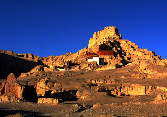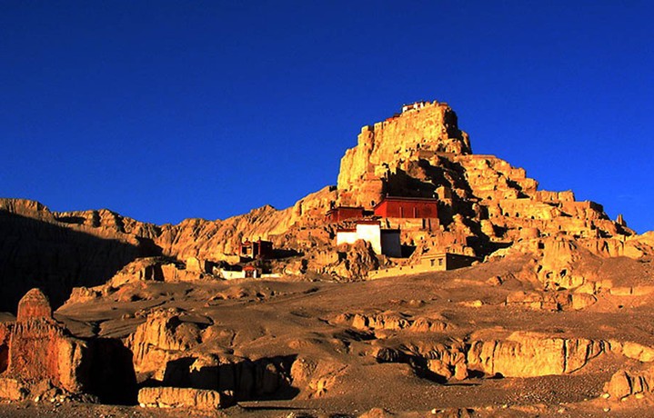 窮宗距文部鄉(xiāng)辦事處約20公里,地處達(dá)果山脈中段以西,有約1平方公里的大片遺址即是象雄王國(guó)遺址之所在。遺址沿路的山壁便是王宮的天然防御工事,有些地域用鵝卵石夾層夯高。頂部較為平坦,并有大量的戰(zhàn)壕、暗道的遺跡。山壁東西兩端矗立著巨大的土石結(jié)構(gòu)的城墻殘?bào)w,有幾米高,版權(quán)所有山東聊城聊之旅國(guó)際旅行社有限公司,轉(zhuǎn)載必究!可見當(dāng)時(shí)城防之固。暗道已基本倒塌,但仍能辨出暗道一通王宮,一通山壁外墻,遺址規(guī)模宏大的遺址群背依達(dá)果雪山。窮宗也是苯教的一座神山,繞山一圈據(jù)說會(huì)福澤無量,但要注意得逆時(shí)針來繞。