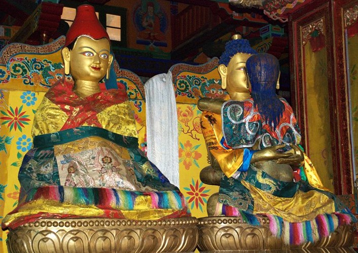 雍布拉康坐落在澤當鎮東南約5公里的扎西次日山上,是西藏最早的宮殿。雍布拉康已有2100多年的歷史,3曾建筑。一層的前半部為門廳,面積33平方米,門廳處是一個帶檐的小平臺。后半部是佛殿,供奉松贊干布、文成公主等塑像。第二層亦分前后兩部分,前半部分為三面環繞矮墻的平臺,后半部是帶天井的回廊。五世達賴喇嘛時在碉樓的頂部加蓋了四角攢尖式金頂。雍布拉康除部分僧房外,還有一間曾供歷代達賴喇嘛來此禮佛時居住的臥室。