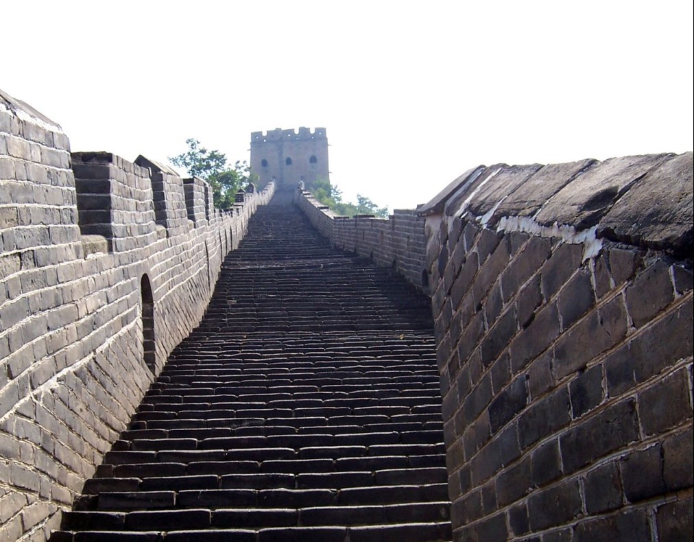 登上第六個(gè)敵樓,樓分上下兩層:上層是瞭望臺;下層是成邊將士住房,三面有窗,北邊是射箭孔。整個(gè)樓用大方石塊砌成,顯得墩實(shí)、堅(jiān)固,氣度不凡長城的最高處為,需登“天梯”而上。天梯高達(dá)100米,坡度85度,幾近垂直,無膽量的絕難征服。仰頭上望,那磚石砌就的臺階僅可容腳,兩側(cè)懸崖陡壁,中間這一道臺階細(xì)如線,薄如刃,陡如立。