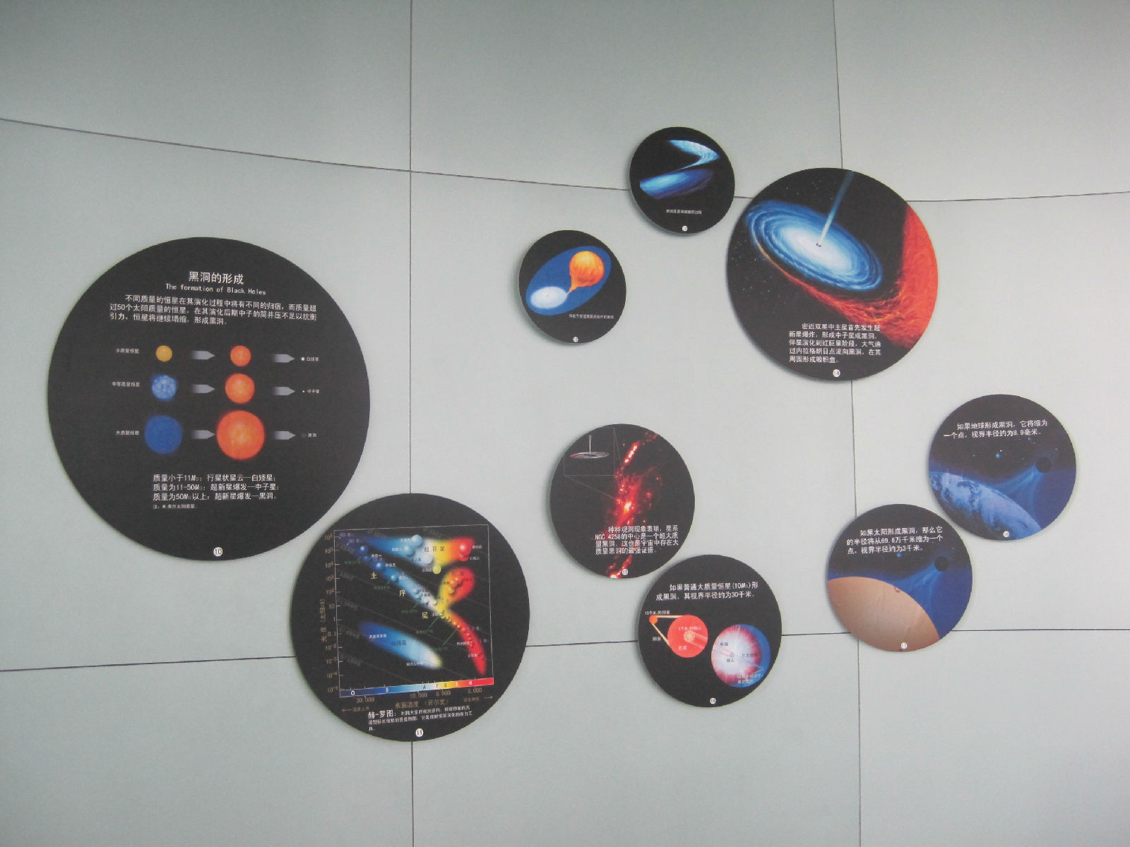 太陽展示廳,展覽面積300米,以展出太陽和太陽系內容為主。主要展項內容有從太陽真空望遠鏡觀測接收而來的1.8米太陽白光投影像;174毫米手描太陽黑子白光全日面投影像;艷麗多彩的太陽光譜投影像;太陽白光、太陽色球全日面和太陽局部活動區的CCD電視圖象等。北京天文館設施包括天象廳,門廳,展覽廳,報告廳,天文臺等。北京天文館是中國乃至亞洲大陸的第一座大型天文館,目前仍是大陸唯一的大型專業天文館。2004年12月12日,北京天文館新館落成,設施包括數字宇宙劇場,3D影院 ,4D影院,太陽展廳等。