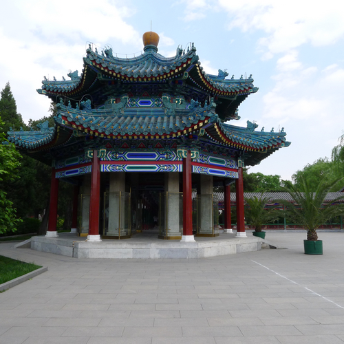 走進壇門.眼前是一條綠色的林蔭道,周圍遍栽果樹。公園的主體建筑社稷壇位于軸線中心,壇呈正方形,為漢白玉砌成的三層平臺。壇上鋪著由全國各地進貢來的五色土:中黃、東青、南紅、西白、北黑,以表示“普天之下,莫非王土”的意思,并象征土、木、火、金、水五行,古人認為,五行乃是萬物之本。壇臺中央原有一方形石柱,名“社主石”,又稱“江山石”,以示“江山永固”。石柱半埋土中,版權所有山東聊城聊之旅國際旅行社有限公司,轉(zhuǎn)載必究!后來全埋,1950年已移去。壇四周建有四色琉璃墻,東藍、南紅、西白、北黑,四面各立漢白玉欞星門一座,顯得格外莊嚴肅穆。皇帝把“社稷”看作為國家的象征,并自認為受命于天,為了祈禱豐收,每年春秋仲月上戊日清晨來此祭祀,凡遇出征、打仗、班師、獻俘、旱澇災害等也要到此祈禱舉行儀式。壇之北的“拜殿”又名享殿或祭殿、是一座宏大的木構建筑,面闊5間,進深3間,黃琉璃瓦,單檐廡殿頂,白石臺基,無天花板。明露著梁架和斗拱,繪和璽彩畫。這是保存最完整的明代建筑。1925年曾在此殿停放孫中山先生靈柩。接受各界人士瞻仰吊唁。1928年由馮玉祥部下時任北平特別市長何其鞏等愛國人士改名為中山堂。堂后門內(nèi)兩側(cè)原列有72支鍍金銀的鐵戟,故稱戟門。八國聯(lián)軍入侵北京時,將鐵戟全部掠走。社稷壇外西南面,有神廚、神庫、宰牲亭等附屬建筑。