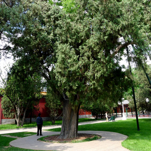 公元十世紀,北京曾是遼王朝的陪都“南京”,這里是當時都城東北郊外的“興國寺”寺址。這幾棵古柏就是遼寺的遺物。其中干周最大者,達一丈九尺多。