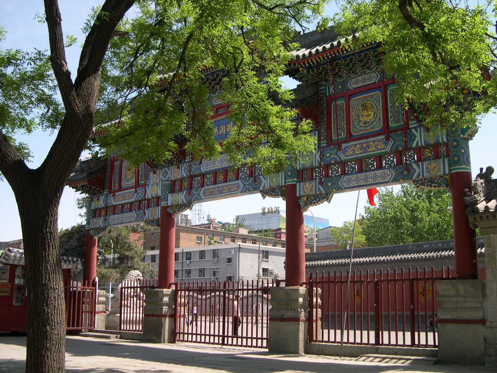 牌樓 原為欞星門,是觀中道士觀星望氣之所。后來欞星門演變?yōu)榕茦牵咽ピ瓉淼挠^象作用。此牌樓建于明正統(tǒng)八年(1443年),為四柱七層、歇山式建筑。