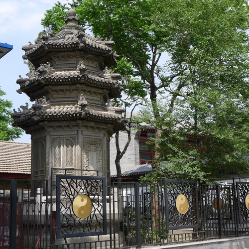 位于東北角塔院內(nèi),造型為八角形,三蹭磚石結(jié)構(gòu)。原塔前還有供奉羅公像的“羅公前殿”和“白云觀重修碑”、“羅真人道行碑”、“粥場(chǎng)碑記”、“云溪方丈功德碑”四塊石碑,現(xiàn)僅存羅公塔。 羅公為江西人,康熙年間來京,常住白云觀,雍正五年(1727)年逝世,被雍正帝敕封為“恬淡守一真人”。民間傳說羅真人創(chuàng)造了剃頭理發(fā)的工具和按摩術(shù),傳入皇宮后得到雍正帝的贊賞,舊時(shí)理發(fā)行業(yè)尊奉羅真人為祖師爺。