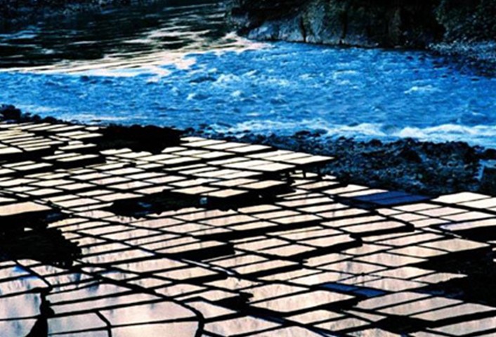 鹽井自古就有產鹽的歷史,而鹽田又成為這里獨有的一道人造景觀。所謂的鹽田,其實是在洶涌澎湃的瀾滄江邊搭建的一些土木結構的平臺。順著鹽田之間的小道下坡,鹽水井就挖在江邊。這兒的鹽水井有的深近10米,工人們身背圓柱形的木桶,將鹵水存儲在鹽田邊的槽溝里,其他的工人將鹵水從槽內舀出倒入鹽田里。經過一天日頭的暴曬和江風的吹拂,第二天,鹽田里就會結晶出白色的鹽粒了。 依山搭建層層的鹽田氣勢雄偉,鹽民們沿著祖先的足跡,走在崎嶇險峻的小道上辛勤地勞作,在延續生命的同時也創造著世界上獨特的景觀。