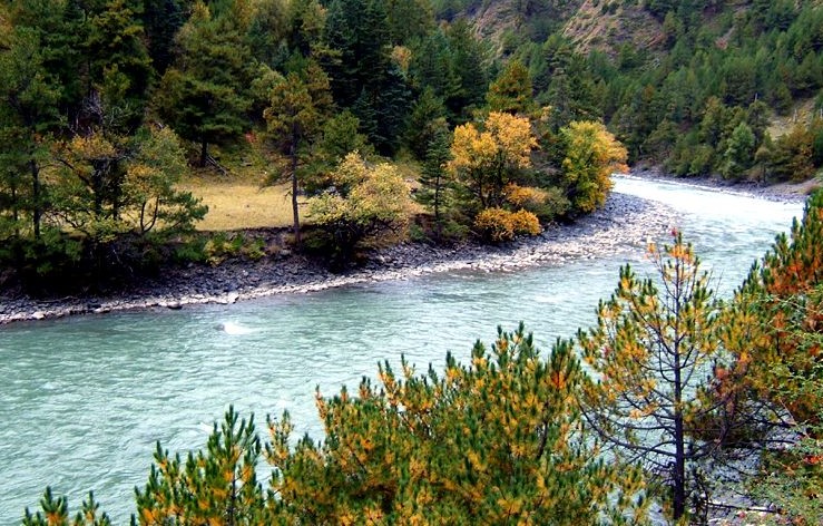 扎曲河谷風景奇特,春夏秋冬,兩岸風景隨四季變化,多姿多彩。春夏時節,溝里綠樹遍野,蒼松古柏,傲然挺立,放眼望去,漫山皆綠,繁花爛漫,溝里到處芳香四溢,山上云蒸霞蔚,景色忽隱忽現。到處流水潺潺,山底江水清澈如綠帶,水波粼粼之間,有游魚嬉戲,讓人仿佛進入了夢幻境界。