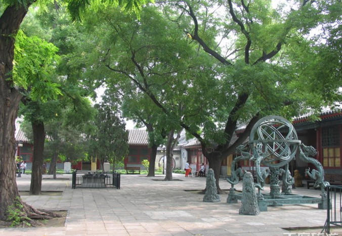 北京古觀象臺屬全國重點文物保護單位,位于北京市建國門立交橋西南角,古觀象臺始設(shè)于元代,原名“司天臺”。明初攻克北京時毀于戰(zhàn)火,殘存的天文儀器被運往南京保存。明正統(tǒng)七年(1442年)時重建此臺,古觀象臺是由元代大都城的東南角樓改建而成的高臺磚砌建筑。改名“觀星臺”,并復(fù)制了一套儀器,明代臺上置有大型銅鑄天文儀器渾天儀、簡儀、渾象儀(天球儀)等,臺下是紫微殿、漏壺房、晷影堂等建筑,內(nèi)置圭表、漏壺等儀器。