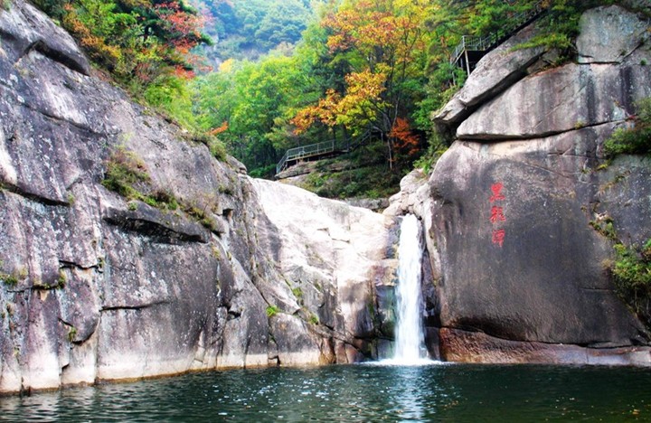 黑龍?zhí)蹲湓诿茉瓶h石城鄉(xiāng)鹿皮關(guān)北面的一條全長(zhǎng)4公里,水位落差220米的峽谷里,距北京100公里。春花、秋月、平沙、落雁、曲、疊、沉、懸潭等十八個(gè)名潭撒落在幽深振奮峽谷里,千姿百態(tài),各領(lǐng)風(fēng)騷。